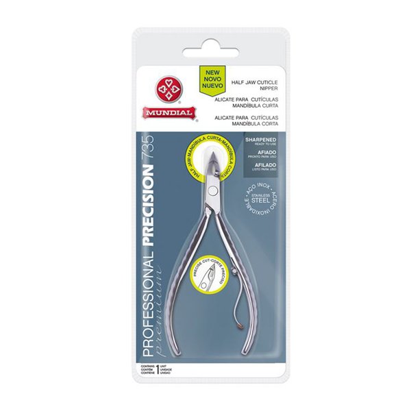 Com uma mandíbula inovadora menor e muito mais afiada, o alicate Mundial 735-PR é referência em precisão! Suas lâminas possuem formato exclusivo direcionado para facilitar a penetração do alicate na cutícula sem machucar e cortando perfeitamente. Seu cabo anatômico e texturizado se ajusta à mão com mais conforto. A linha Professional Premium da Mundial traz alicates de excelente qualidade, pensados e desenhados exclusivamente para o melhor desempenho possível.