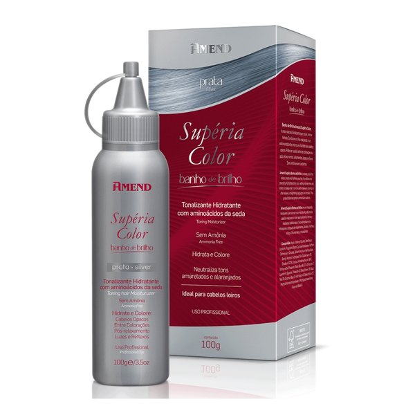 6- Para cabelos grisalhos coloridos e cabelos escuros descoloridos e tingidos após colorir a raiz com a sua coloração habitual, tonalize o restante do cabelo com Amend Supéria Color Banho de Brilho. Este procedimento evita a sobreposição das colorações, reduz os danos causados a fibra e ajuda os cabelos a recuperar a vitalidade e o brilho.