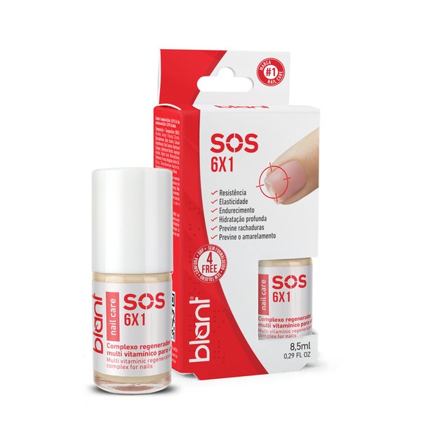 O SOS 6×1 é uma base fortalecedora de aspecto transparente, brilho discreto, alta resistência e enriquecida com 6 ativos para estimulação do crescimento. É um complexo fortalecedor nutritivo que irá tornar suas unhas mais fortes, saudáveis e mais bonitas em um único produto.