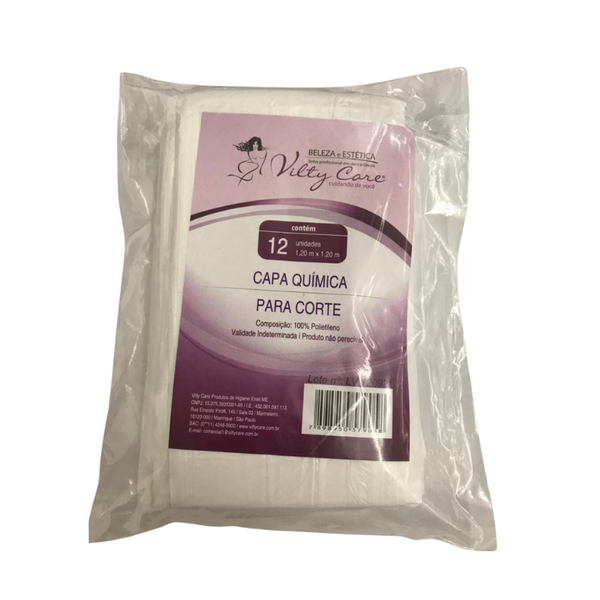 Capa química descartável para corte com 12 unidades. Composição: 100% polietileno. Validade Indeterminada.