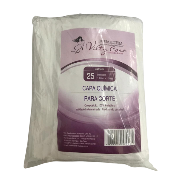 Capa química descartável para corte com 12 unidades. Composição: 100% polietileno. Validade Indeterminada.