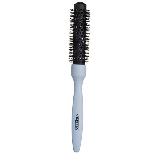 Escova de cabelo redonda com base térmica vazada de carbono e cerdas de nylon.