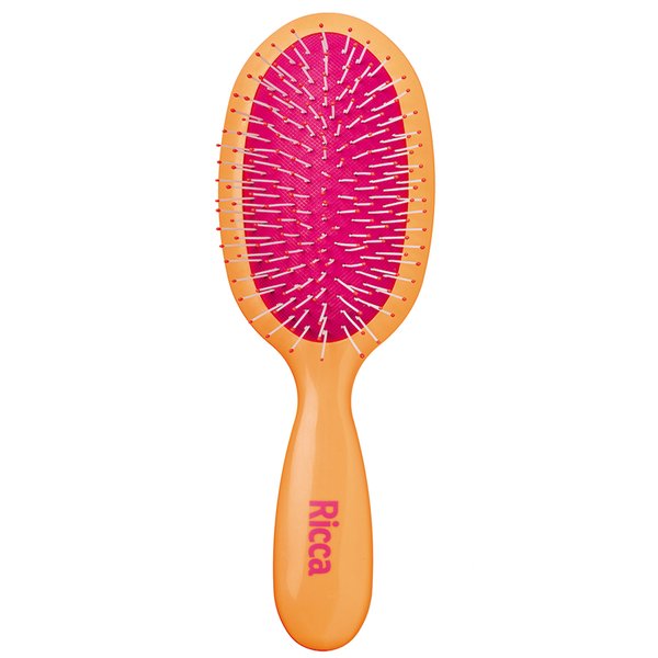 Escova de cabelo com base almofadada que proporcionam uma escovação muito mais confortável e cerdas de nylon mais finas com pontas protetoras que massageiam o couro cabeludo.