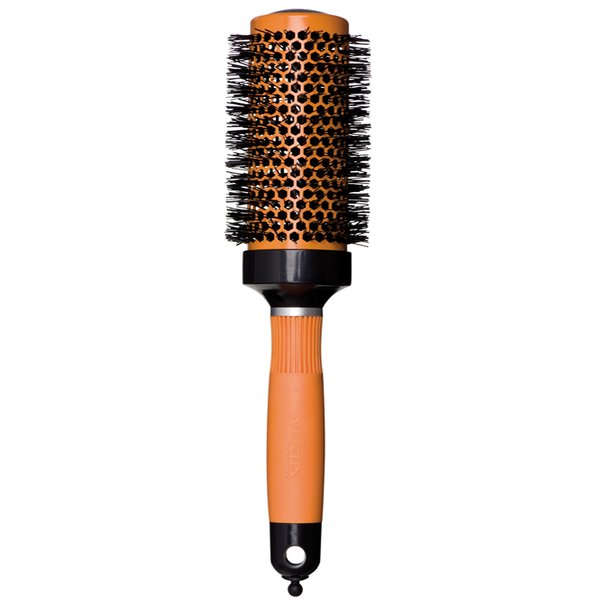 Escova de cabelo redonda com base térmica vazada de cerâmica e cerdas de nylon ionizadas tamanho grande.
