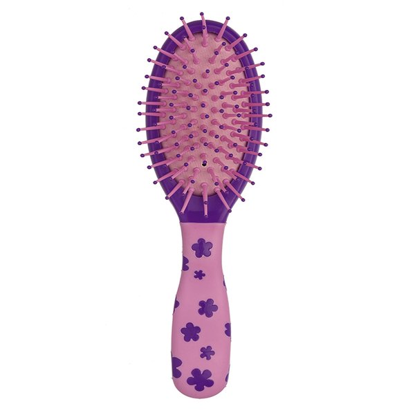 Escova de cabelo com base almofadada que proporciona uma escovação muito mais confortável e cerdas de nylon com pontas protetoras que massageiam o couro cabeludo.
