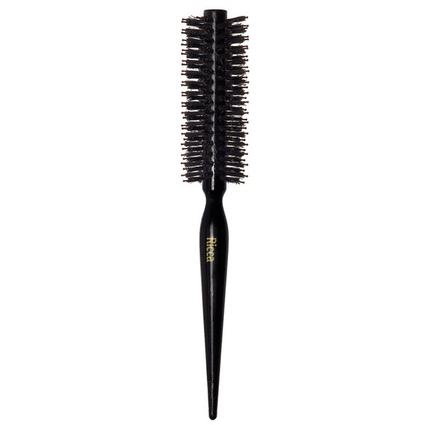 Escova redonda de madeira com cerdas naturais de javali intercaladas com pinos de nylon.