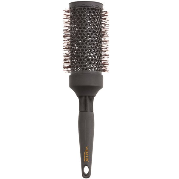 Escova de cabelo redonda com base térmica vazada de cerâmica e cerdas de nylon ionizadas tamanho grande.