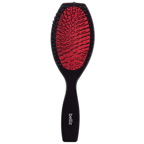 Escova de cabelo com cerdas de nylon em formato especial que não enroscam nas emendas de cabelos com apliques ou megahair.