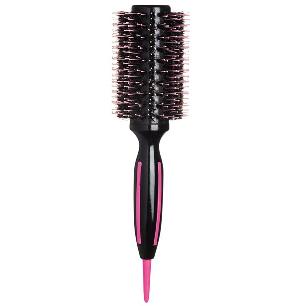 Escova redonda de madeira com base de cerâmica e cerdas naturais de javali intercaladas com pinos de nylon. A base de cerâmica retém o calor do secador por mais tempo, além de distribui-lo mais uniformemente. As cerdas e pinos proporcionam a tração ideal para cabelos mais volumosos e difíceis de penetrar.