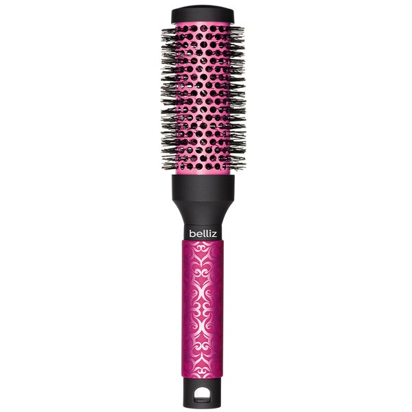 Escova de cabelo redonda com base térmica vazada de cerâmica e cerdas de nylon ionizadas tamanho grande.
