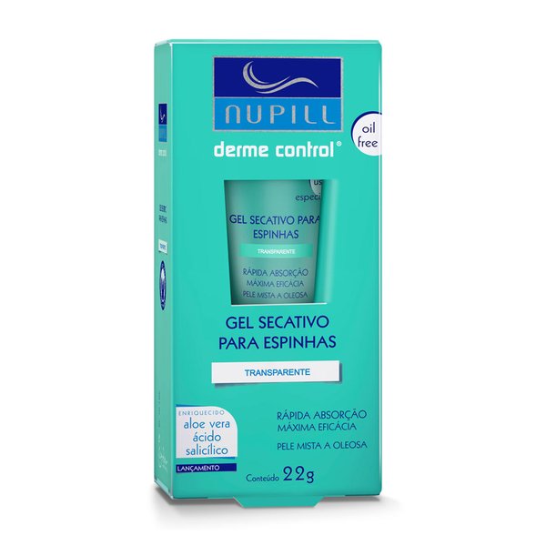 O Gel Secativo Nupill Derme Control é famoso pela sua eficácia e reconhecido por muitos dermatologistas no tratamento da espinha. Possui rápida absorção e máxima eficácia contra acne e espinhas. É indicado para peles mistas a oleosas. Sua fórmula oil-free conta com aloe vera e ácido salicílico, que juntos penetram profundamente atingindo os poros e criando uma camada invisível de tratamento e proteção anti acne.