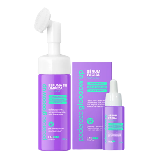 O Kit Labpop Poderoso Glow Up combina a Espuma de Limpeza 130ml e o Sérum Facial 30ml, criando uma rotina completa de skincare. Limpeza suave, hidratação intensa e efeito radiante para uma pele uniforme, firme e revitalizada.