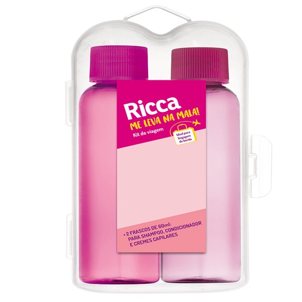 Kit de viagem contém 1 case e 2 frascos de 60ml para shampoo, condicionador e cremes capilares.
