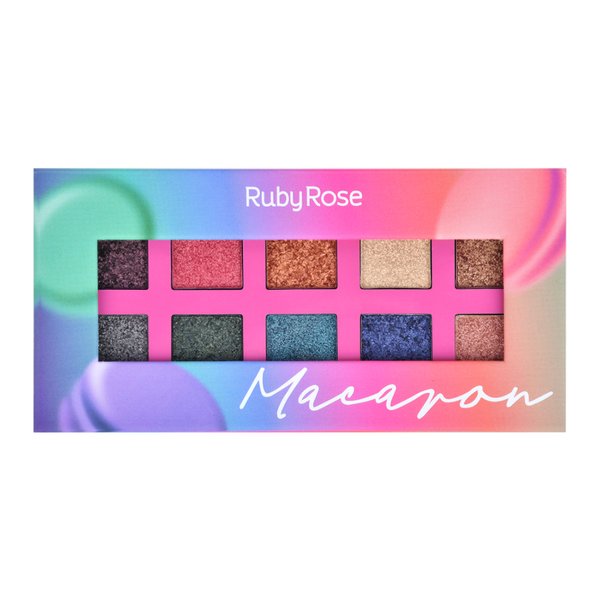 A paleta de sombras Macapon está disponível em 10 cores metálicas, sendo todas as sombras são super pigmentadas e macias.A paleta possui tons coloridos como rosa, azul, verde, dourado, marrom, grafite e um clarinho.