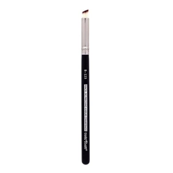 Pincel Macrilan B123, especialmente desenvolvido para aplicação de corretivo facial em áreas como contorno dos olhos, olheiras, contorno do nariz e queixo. Também pode ser utilizado para aplicar o primer na região dos olhos. Feito com formato especial para um acabamento suave e uma maquiagem impecável.