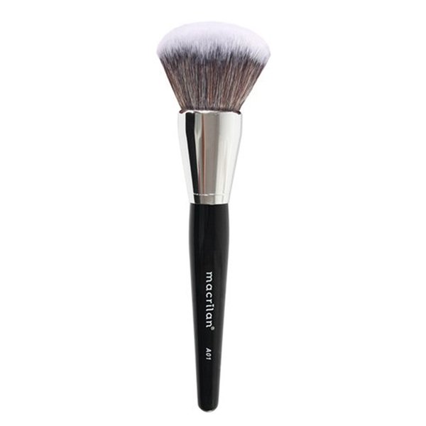Pincel Macrilan A01, especialmente desenvolvido com cerdas sintéticas, macias e densas para aplicar todos os tipos de produtos em pó por todo o rosto, pescoço e colo. Possui formato arredondado para uma aplicação uniforme, selando a base e o corretivo e proporcionando acabamento aveludado a maquiagem.