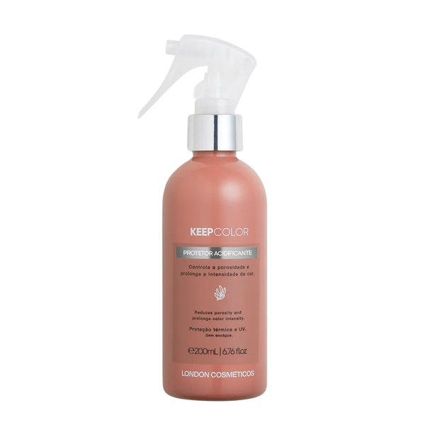 O Protetor Acidificante Keep Color London Cosméticos 200ml é um tratamento profissional desenvolvido especialmente para quem busca manter a cor dos cabelos por mais tempo, com brilho, maciez e proteção da fibra capilar. Indicado para cabelos coloridos, loiros, descoloridos ou com mechas, o produto utiliza tecnologia biotecnológica avançada para estabilização do pH capilar e selagem das cutículas.