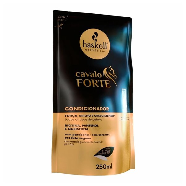 Condicionar Cavalo Forte condiciona e trata os fios, hidratando e promovendo maciez, brilho e suavidade ao toque. Proporciona força, brilho e crescimento aos fios.