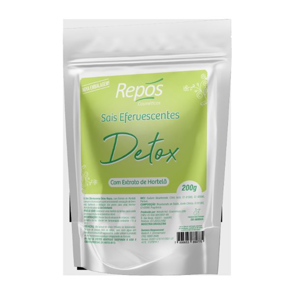 Os Sais Efervescentes Detox Repós, com Extrato de Hortelã suavizam e desintoxicam a pele promovendo sensação de bem estar, facilitando a dilatação dos poros para uma melhor absorção dos ativos do Gel Esfoliante.