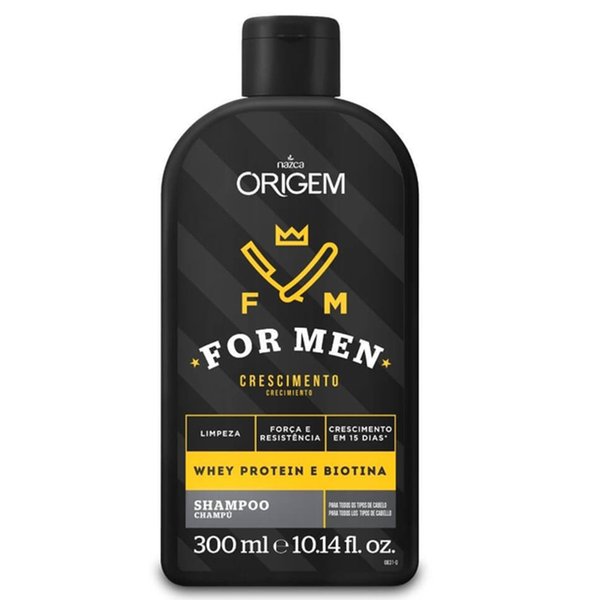 Origem for Men Shampoo de Crescimento limpa o seu couro cabeludo e seus cabelos, proporcionando maior força e resistência, que auxilia em crescimento saudável dos fios.
