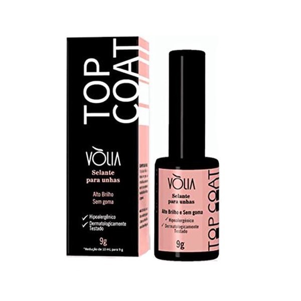 O Top Coat Vòlia (9g) é o finalizador sem goma, que atua como um selante em gel para proporcionar maior durabilidade, brilho e resistência.
