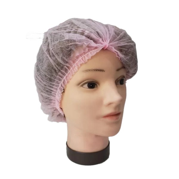 Touca de TNT descartável na cor rosa com 12 unidades.